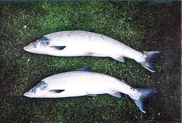 Grassed. Two springers from the Aberbothrie Beat of the River Ericht, Blairgowrie, Perthshire, caught on a Foxford Shrimp.