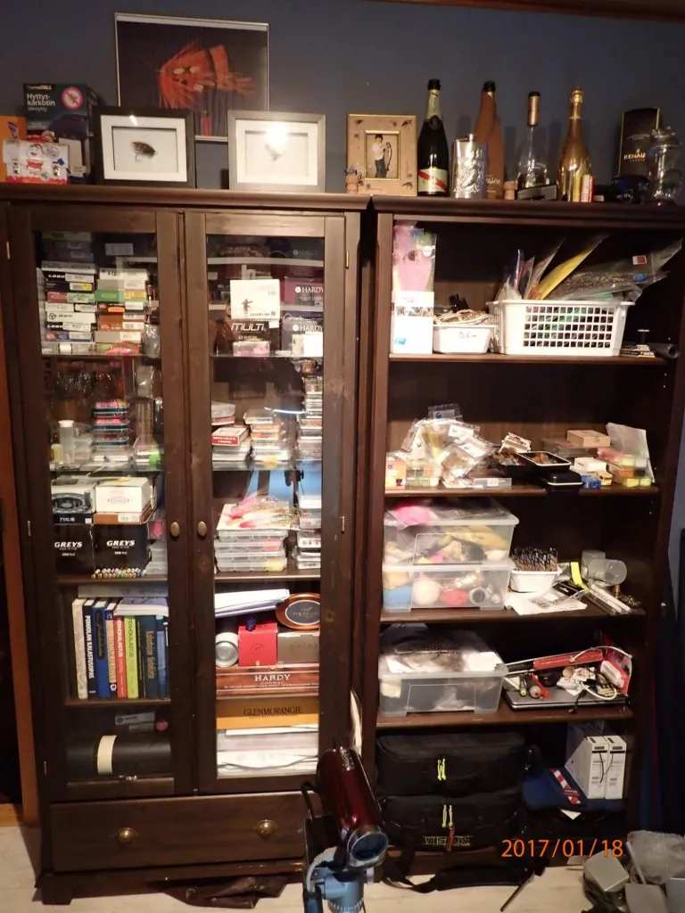 Finally I made it = organize stuff and clean it. I started tying early 2013 and the first 2-3 years I tied about 4000 flies = stupid. But I learned a lot of tying and my flies are good looking - at least my own eyes. I tie flies for pike, salmon, trout, rainbow, grayling, perch, pike perch, wet, dry etc. so I have to have a lot of tying material ;-)