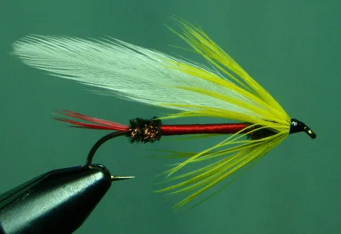 Hackle Yellow saddle, 4 turns, fibers longer than normal