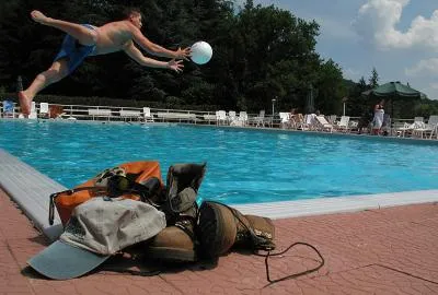 My brother Rasmus grabs a volley ball as the wading shoes are resting.