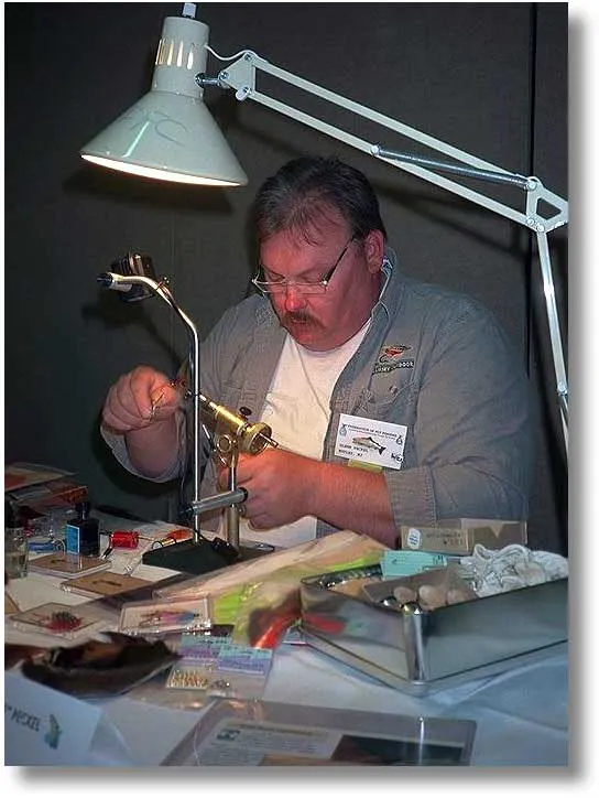 Glenn Peckel, member of the "Joisey Mob', tying at the Salmon Fly Symposium