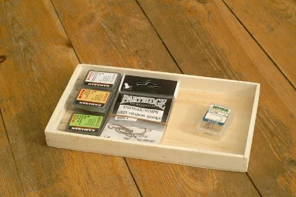 This little box actaully contained dried dades or figs originally, but made a fine tray for hooks and other small stuff.