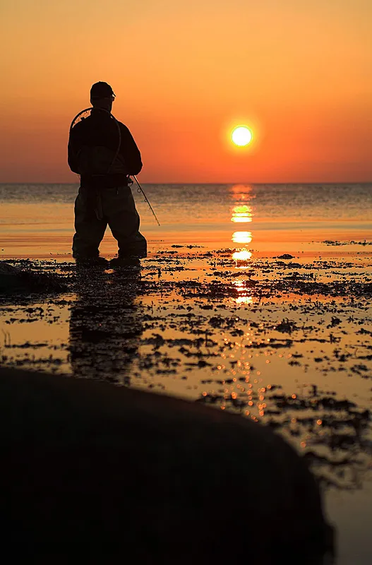 Going low also applies to sunset pictures like this. Getting the sun below the angler's head emphasizes that it really is low.