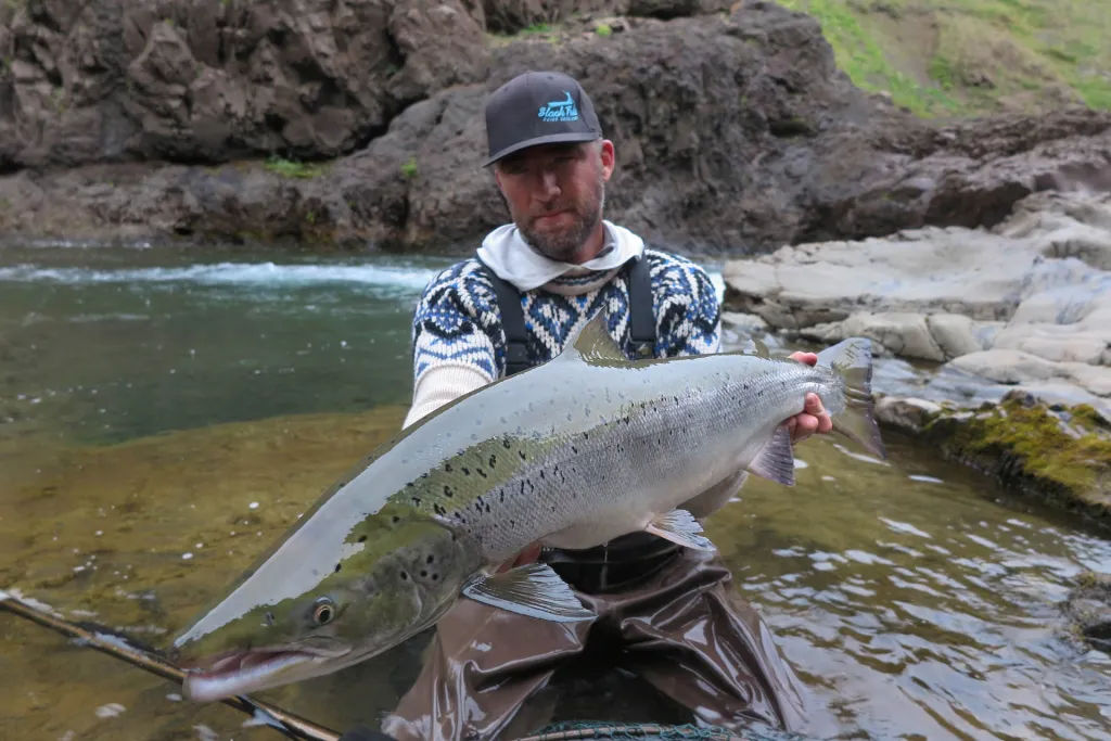 Although Icelandic salmon aren't primarily known for their size, some really huge fish swim in the rocky rivers.