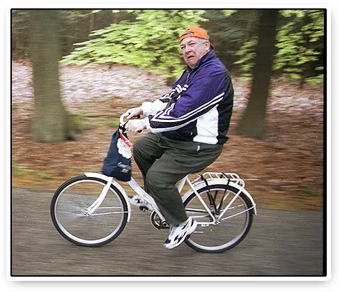 The definition of a streamer: Mike Martinek on a bike for the first time in decades. No, it is not the bike that is small...
