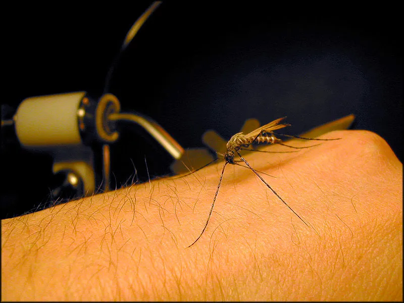 Bob Mead's amazing mosquito sitting on the back of my hand.
