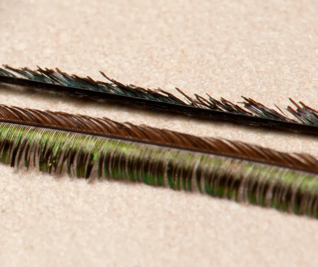 Steamed herl (front) compared to unsteamed (back). It's a key to nice herl overwings.