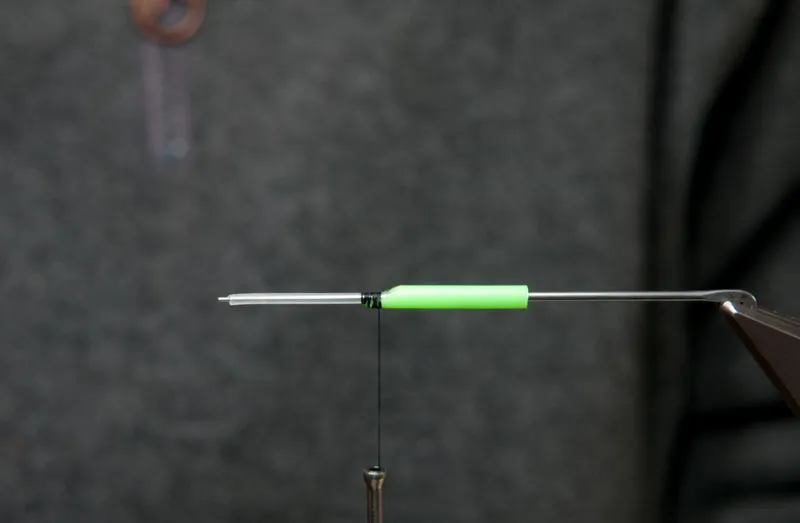 Start the thread over the connection between the thin and the thick tube