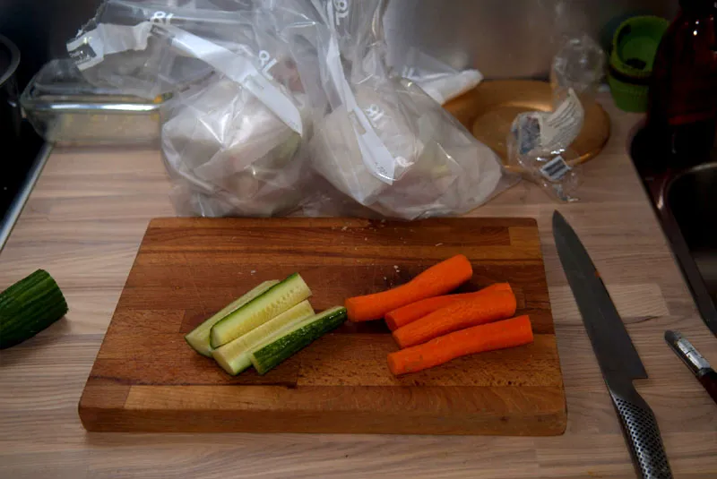 I like a bit of fresh vegetables on the side, here cucumber and carrots.
