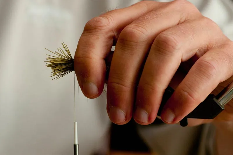 Tie in the deer hair in the middle in front of the mylar and take a couple of turns over the hair