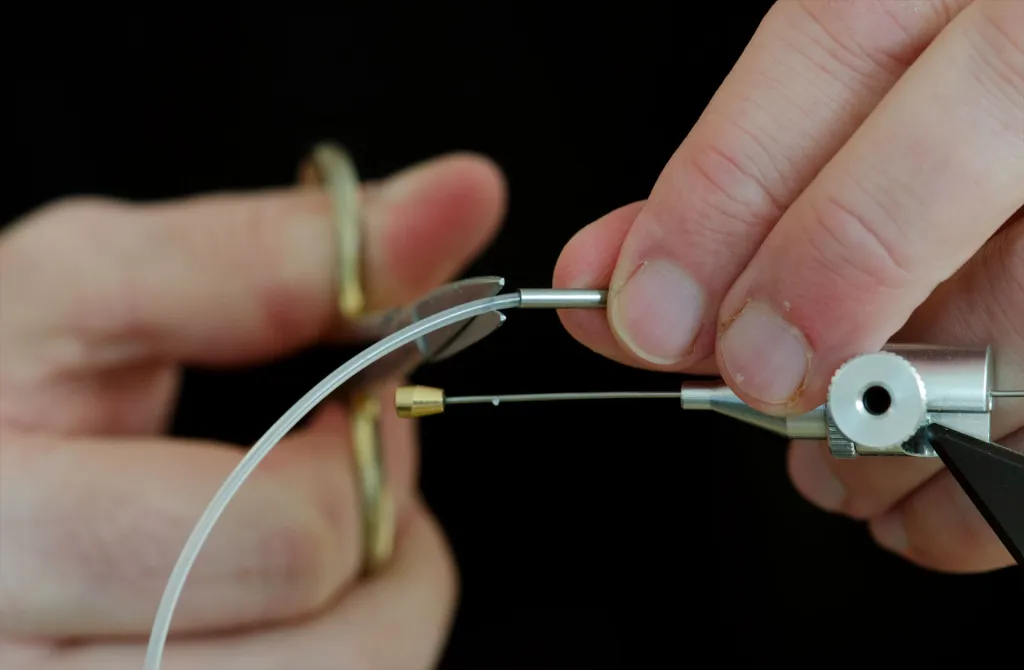 Cut the lining in the other end leaving a bit to melt a collar