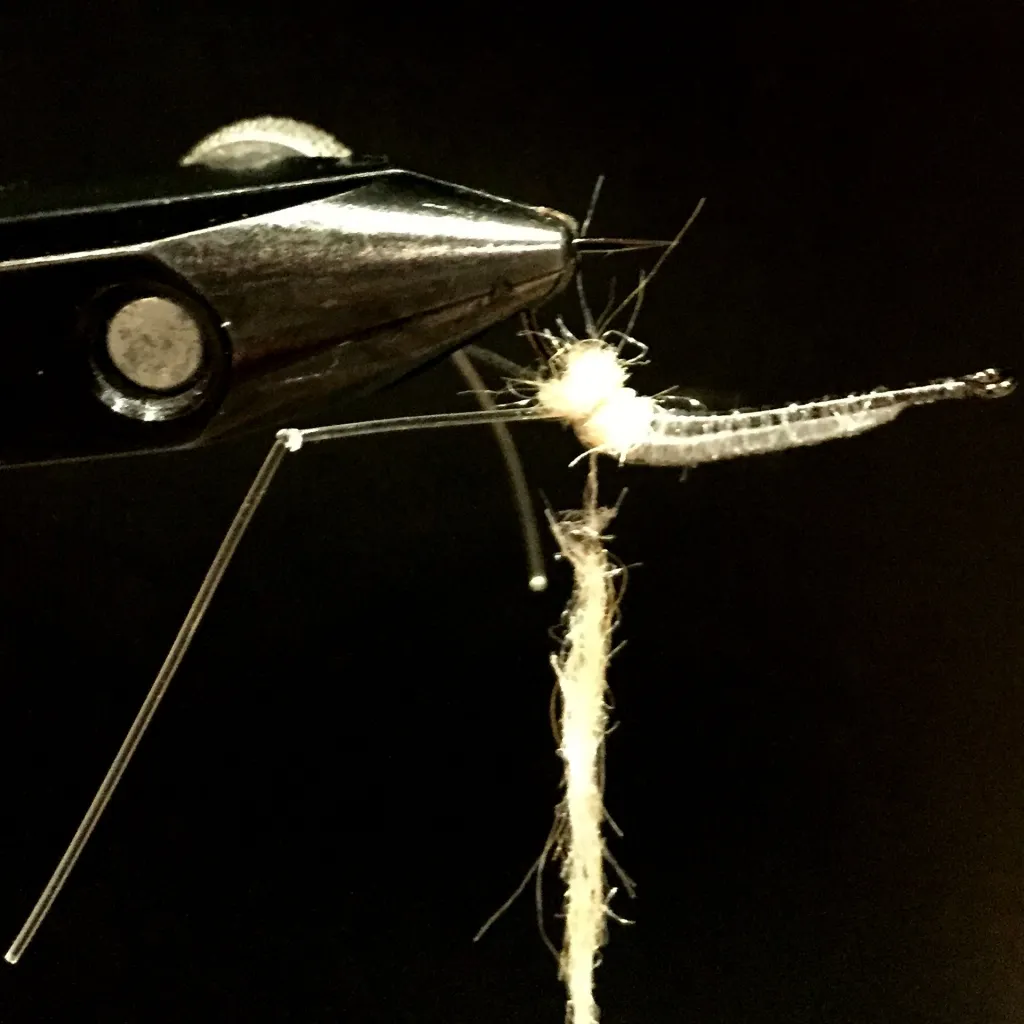 Tie knots on pieces of the leg material and tie in the first set