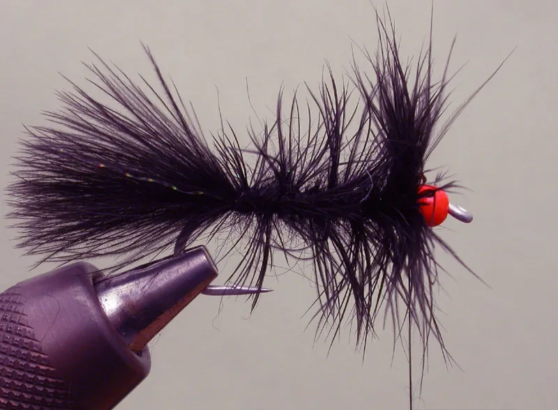 Brush the body very well and in every direction. The last brushing step should be in the direction towards the tail. Here you give the fly its final look. Cut off the thread (not too short) and secure the knot with varnish or glue