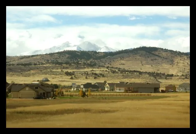 The foothills where the Big Thompson Canyon and river meander - and it's also my back yard. The picture was taken from my back patio. Long's Peak (14,259', 4,346 meters) is just behind the Rocky Mountain foothills.