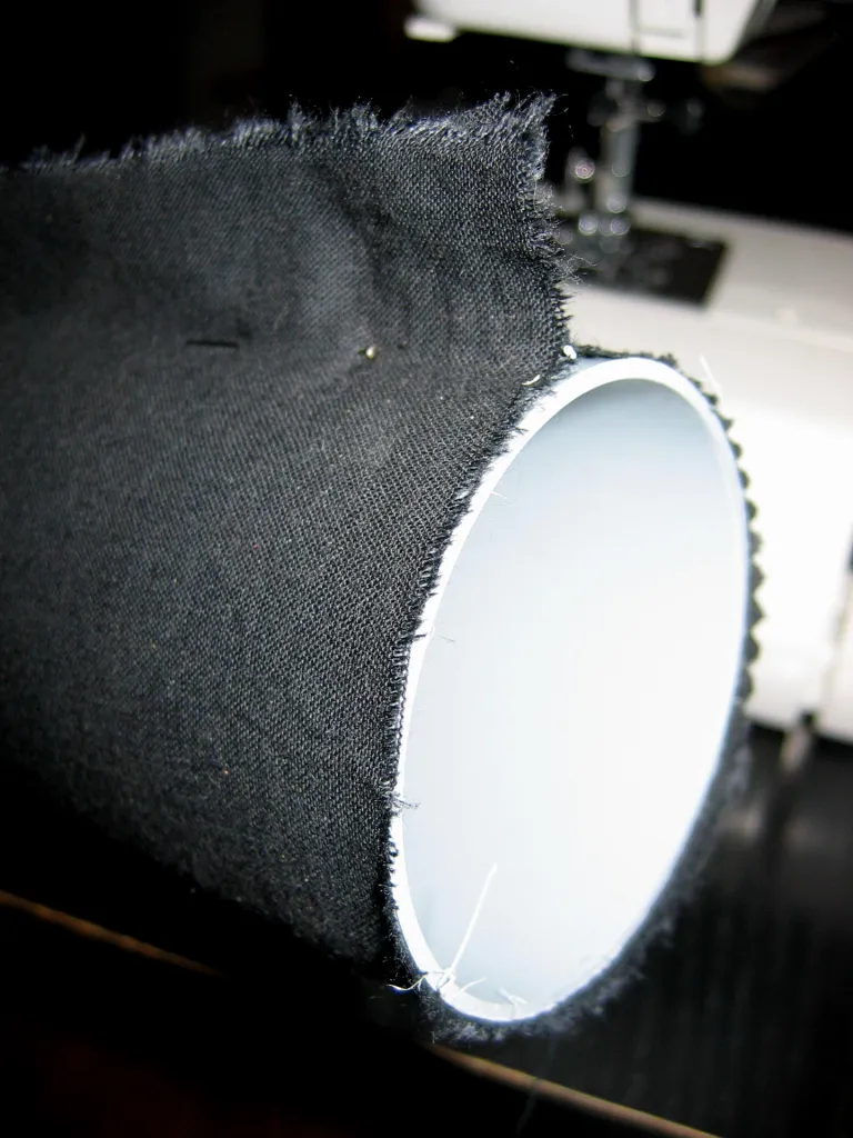 Fit the fabric around the pipe and make sure the fit is tight. Set the pins parallel to the pipe as close as you can.