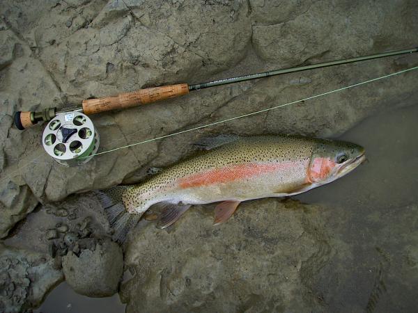 beautiful colored rainbow from New Zealands North Island taken on a dryfly: parachute madame X