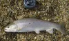 When the sea trout is in salt water it's normally 'uncolored' meaning shining silvery with a bluish black back. Also the scales are normally many, but loose, and will fall off when the fish is touched. The fish is in an excellent condition, as it is eating all the time. |