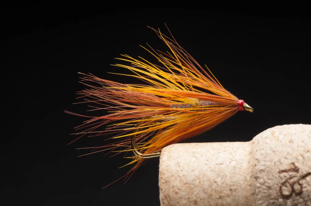 This looks like Belgian Geert Werbrouck's interpretation of a Danish coast classic: the Omoe Brush, but tied with some extras like both red and yellow hackles and a rib between the sections.